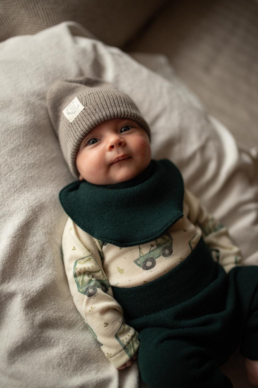 Weiches Lätzchen aus Merinowolle mit Druckknopfverschluss am Hals.